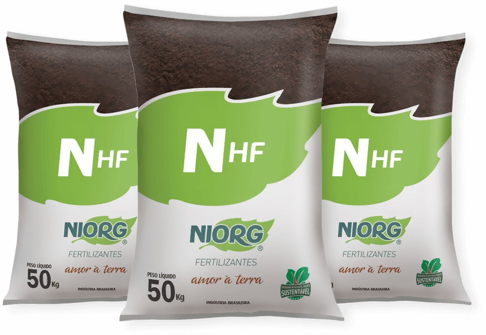 Os Fertilizantes Organominerais Niorg possuem em sua elaboração uma alta concentração de húmus, que proporciona o poder da retenção e absorção dos nutrientes minerais durante todo o ciclo da cultura.