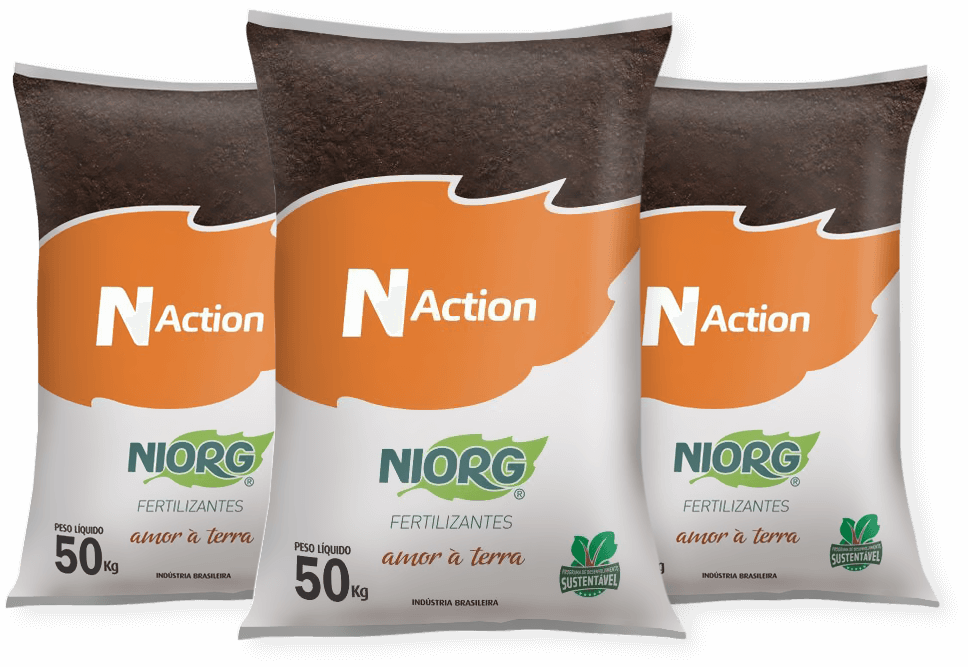 Os Fertilizantes Organominerais Niorg possuem em sua elaboração uma alta concentração de húmus, que proporciona o poder da retenção e absorção dos nutrientes minerais durante todo o ciclo da cultura.